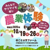 宇都宮餃子さつき徳次郎本店隣のことぶきファームで『みんなで農業体験』さつまいも掘り(品種:紅はるか、あまはづき[予定])を10月19日(日)と10月26日(日)に開催いたします。ご参加できる日をお選びください。現地集合で現地開催となります。